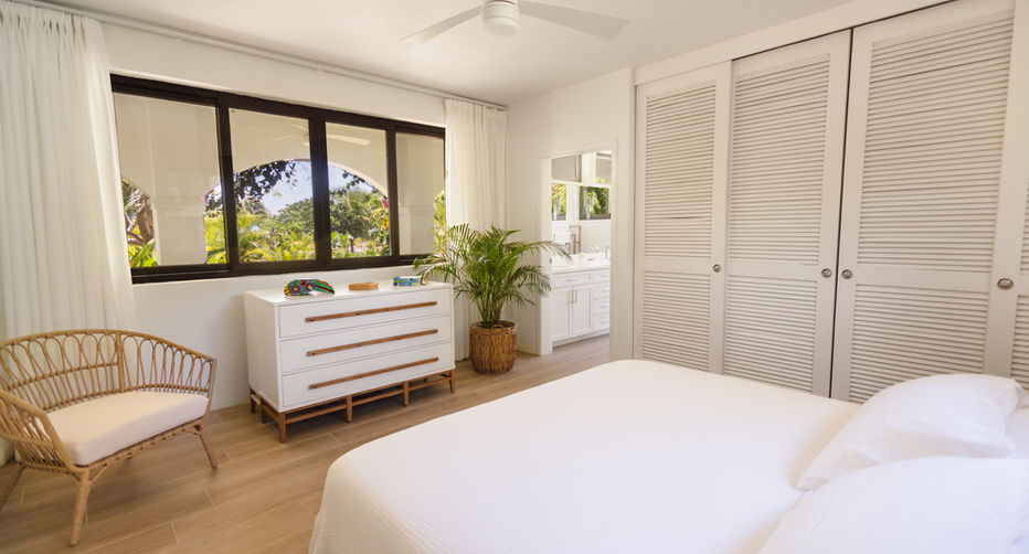 Rejuvenate in a tranquil bedroom with a plush king size memory foam bed and down pillows overlooking tropical gardens and the Caribbean sea.